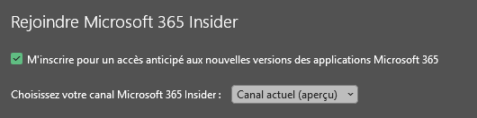 Toute les opérations ci-dessous ont été réalisées avec Office 365 Personnal, canal Insider Preview.